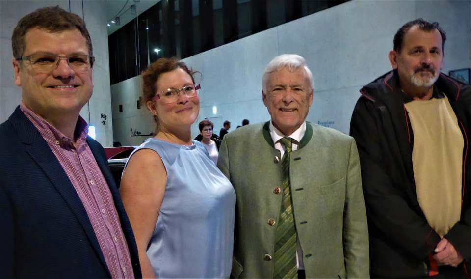 Foto: v.l.: Mag. Jakob Egg, Kuratorin Mag. Christine Gamper, HR Dipl.Ing. Otmar Kronsteiner, Kurator Peter Moras