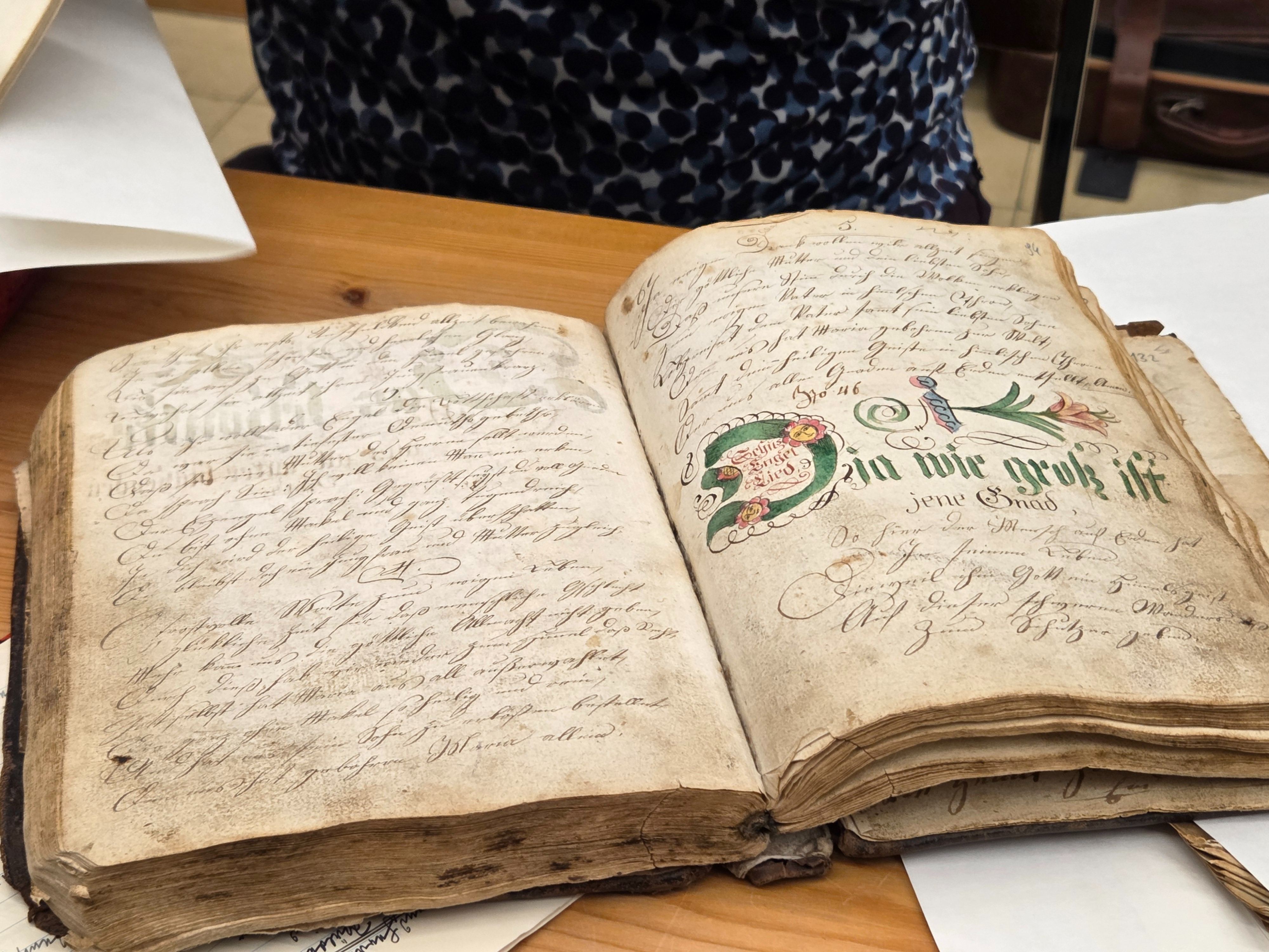 Obfrau Herlinde Keuschnigg mit Mitgliedern des Freundeskreises des Tiroler Volkskunstmuseums und des Forum Land statteten am 26. September dem im Tiroler Landesmuseum Ferdinandeum beheimateten Tiroler Volksliedarchiv einen Besuch ab.