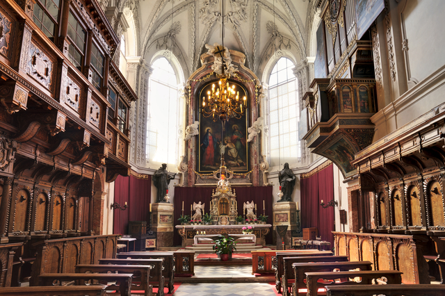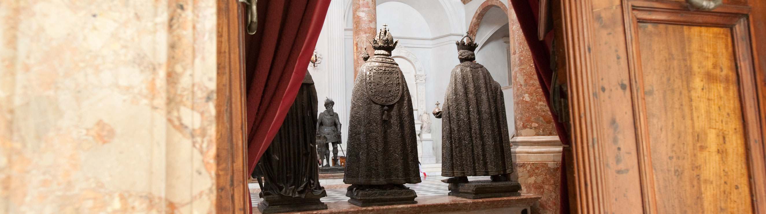 Hauptattraktion sind die 28 überlebensgroßen Bronzestatuen, welche das imposante Hochgrab Kaiser Maximilians I. flankieren. Die "Ahnengalerie" stellt seine Verwandtschaft aus der Habsburgerfamilie, aber auch seine persönlichen Vorbilder wie den sagenhaften König Artus dar. Die Figur des Kaisers kniet betend auf seinem Kenotaph.