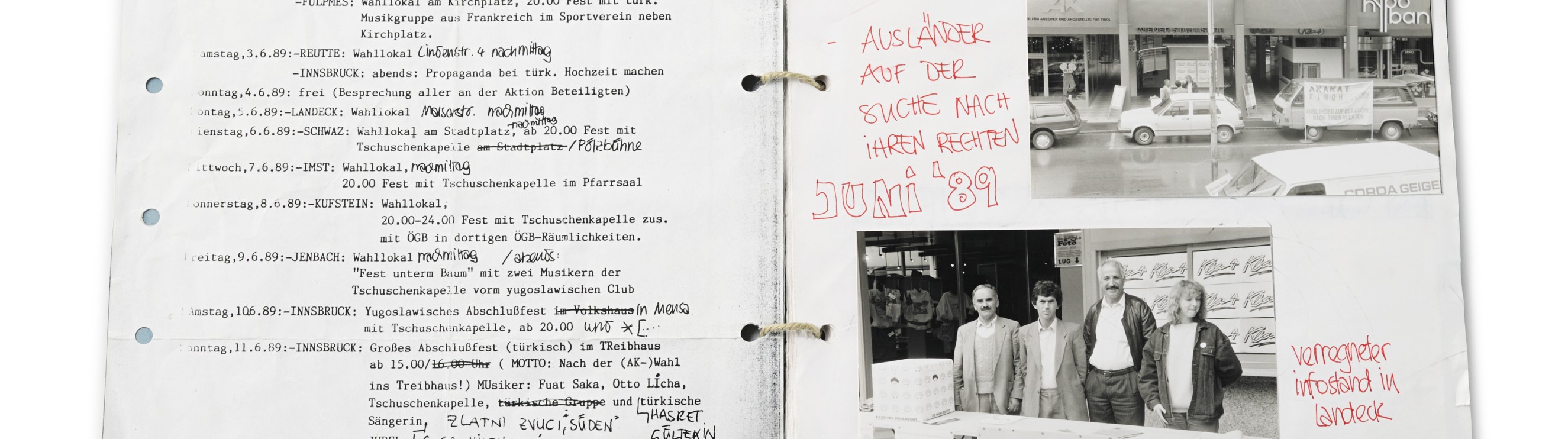 Mehr als zwei Jahre arbeitete eine neunköpfige Konzeptgruppe – bestehend aus Gerhard Hetfleisch, Christina Hollomey-Gasser und Sónia Melo von ZeMiT, Anna Engl, Helena Pereña, Katharina Walter und Karl C. Berger von den Tiroler Landesmuseen sowie Dirk Rupnow und Erol Yıldız von der Universität Innsbruck – am Projekt. Als Diskussionsraum gestaltet, trafen in der Ausstellung Kommentare sowohl von Zugewanderten als auch des Konzeptteams auf Objekte und Fakten. Dokumente, Fotos, Visa oder Briefe, veranschaulichten die persönlichen Schicksale und unsicheren Lebensumstände. Die mithilfe eines Sammelaufrufs zusammengetragenen Objekte gingen nach der Schau an das Dokumentationsarchiv Migration Tirol über.