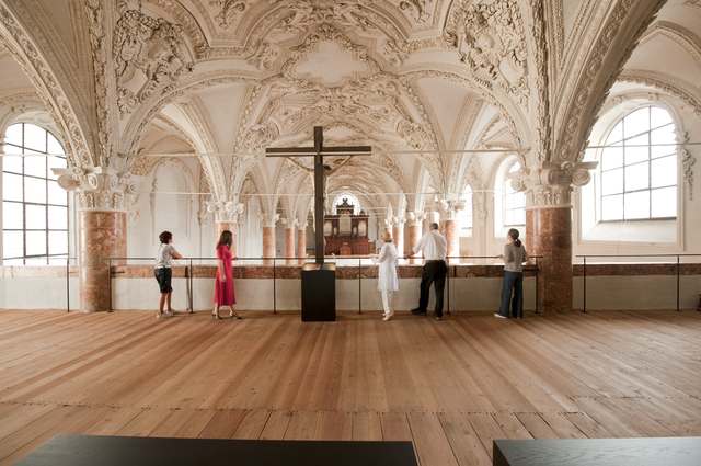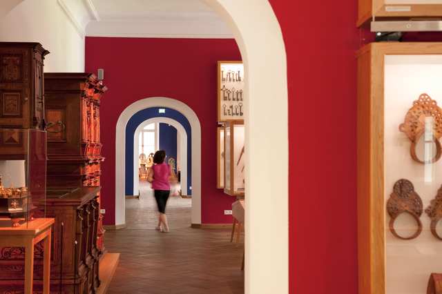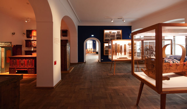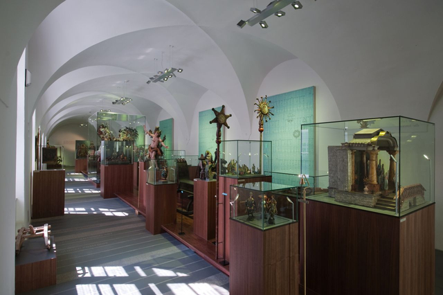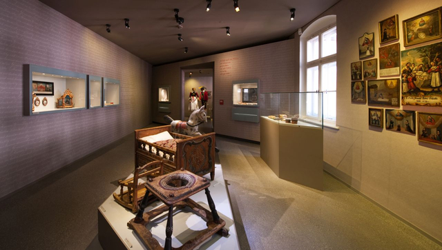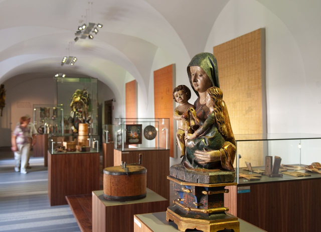 Die Studiensammlung präsentiert eine Fülle an Objekten zu den Bereichen Handwerk, Hausindustrie sowie zu Hab und Gut. Das „Pralle Jahr" zeichnet üppige Feste und Feiern nach. Das „Prekäre Leben" geht auf die Sorgen und Ängste der Menschen ein. Eine Besonderheit sind die getäfelten Stuben sowie die ausgestellten Krippen. Eine multimediale Schau stimmt die Besucherinnen und Besucher auf die Hofkirche ein.